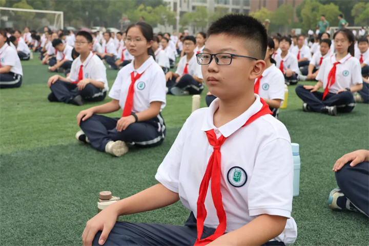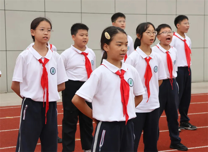结营仪式在雄壮的国歌声中拉开帷幕。校旗护卫队步伐铿锵、气势如虹,旗帜之下,全体营员目光坚定、身姿挺拔,展现出树人学子昂扬向上的精神风貌。