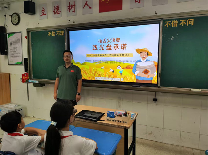 10月16日为世界粮食日,10月17日树人学校九龙湖校区初一年级各班级同步开展 “拒舌尖浪费 践光盘承诺”的主题班会,以生动形式引导学生树立珍惜粮食的观念。