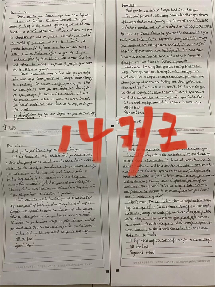 在此次比赛中,学生们以饱满的热情投入创作。在“推荐新班长”的推荐信写作中,同学们紧扣人物性格、生肖、喜爱颜色等要素,条理清晰地阐述推荐理由,用词准确且句式丰富;在“提供建议”的任务中,大家针对“如何变得细心以成为医生”“色彩疗法建议”等要点,给出了逻辑通顺、充满人文关怀的回复。