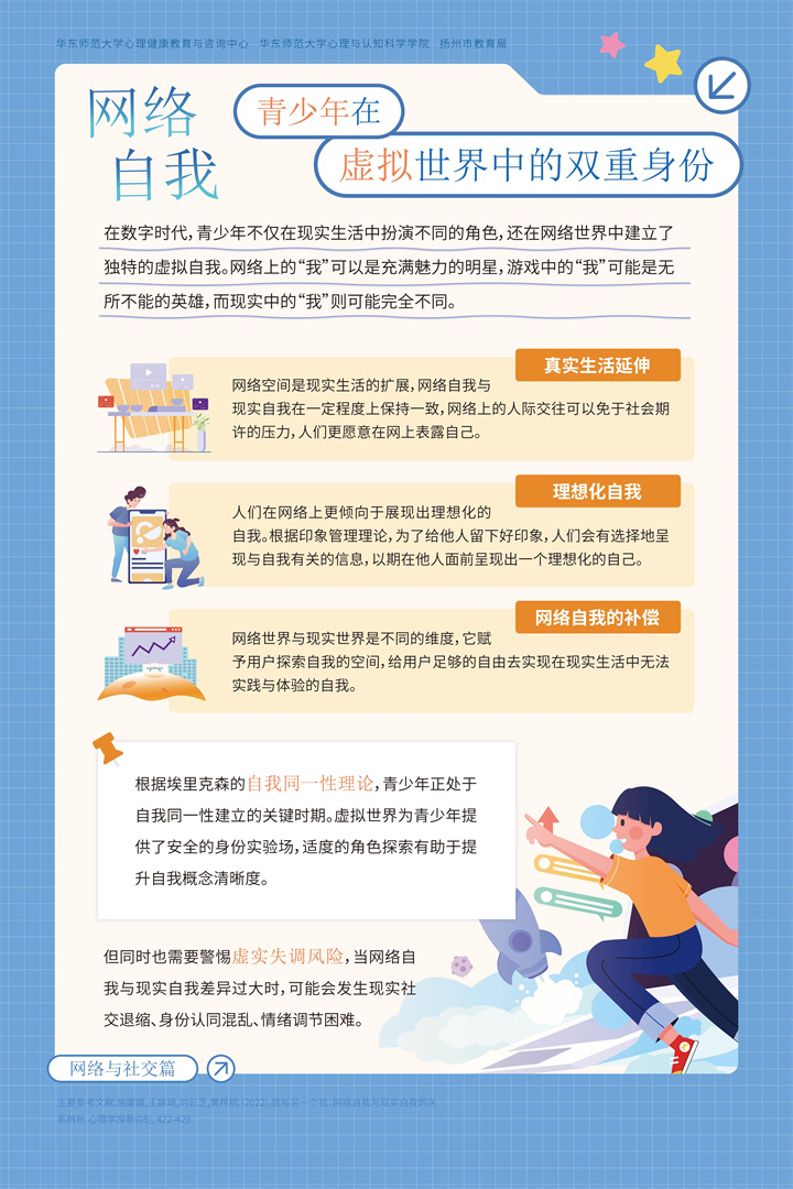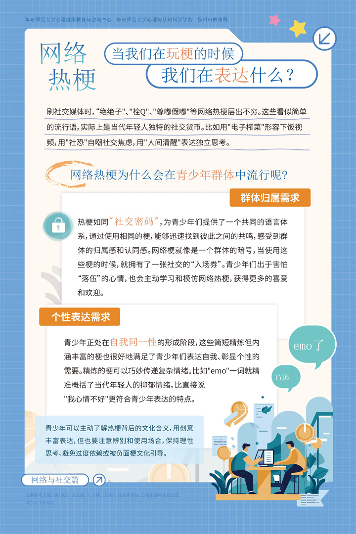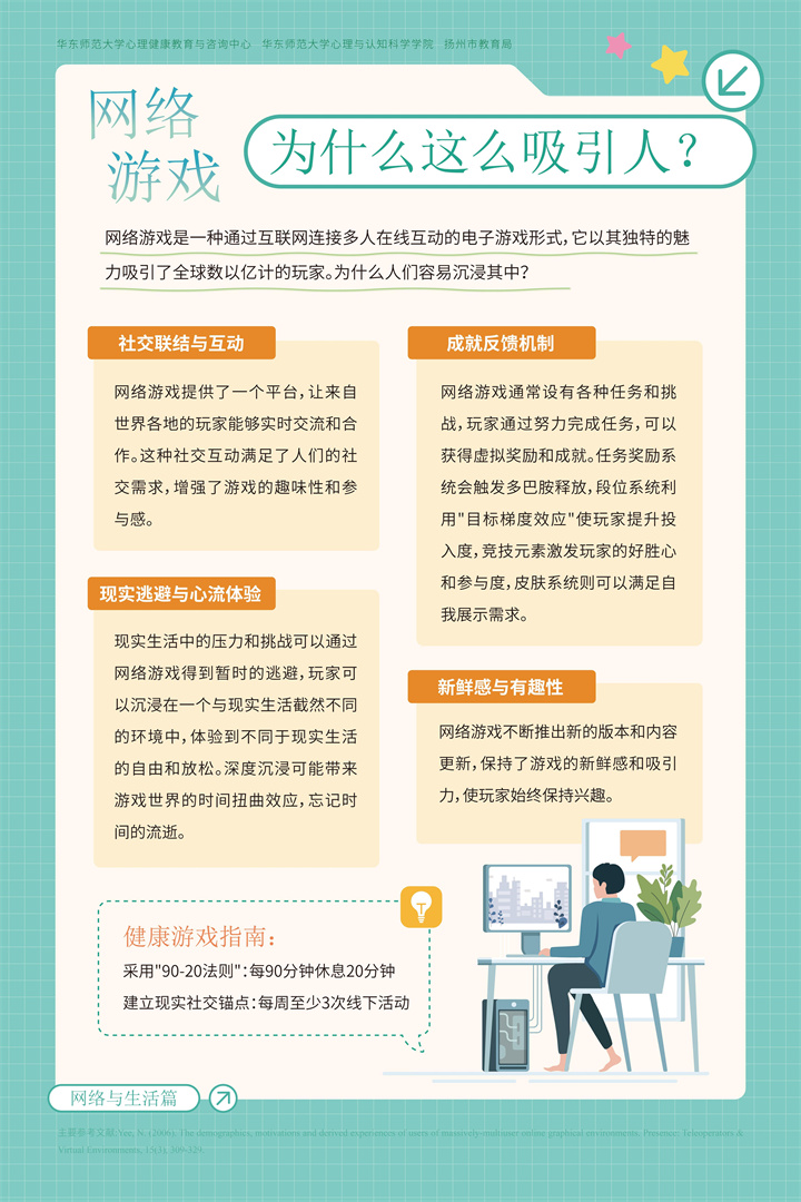 如何正确地理解青少年的网络心理,引导其恰当地应对网络带来的挑战呢?近期市教育局会同华东师范大学心理学院编写的《心网护航》青少年网络心理科普展相关画报,带给我们有益的启示。