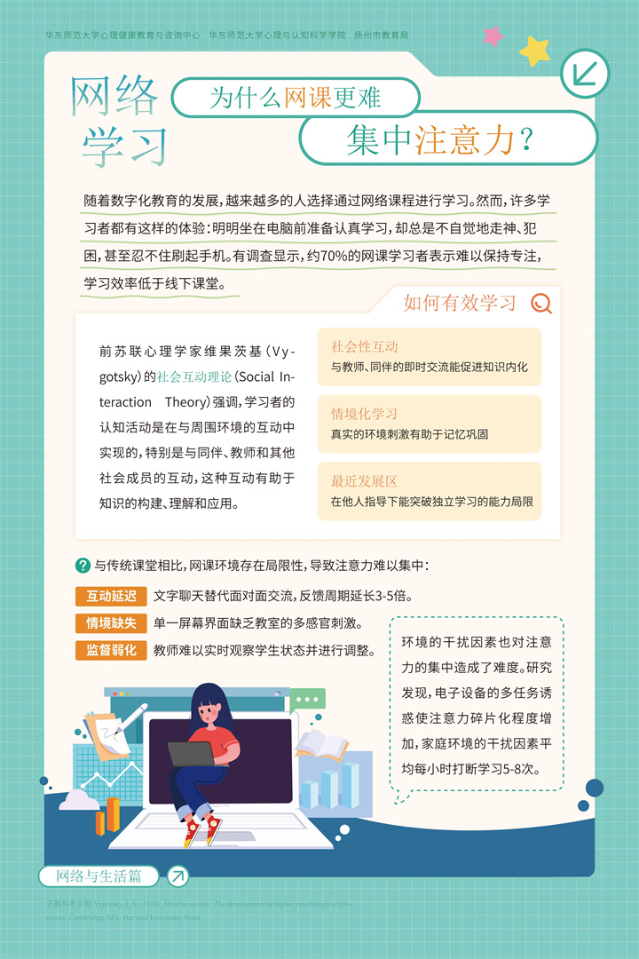 网络是青少年看世界的“新窗户”,能快速获取知识,连接同伴。然而网络不是“无菌室”,青少年既容易被网络正向内容点燃热情,也可能因恶意言论陷入自我怀疑;既容易在网络上拓展知识视野,也可能因缺乏引导而学习效率低下;既容易在网络中满足社交需求,又可能沉浸其中脱离现实学习生活。
