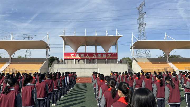 为全面增强师生的消防安全意识,构筑坚实的校园安全防线,在第34个全国消防日到来之际,2025年11月03日上午,伴随着深秋的朝阳,树人学校九龙湖校区全体师生齐聚操场,隆重地举行了以“火患无情警钟鸣,防火减灾守安宁”为主题的升旗仪式。本次升旗仪式由初二(15)班曹语彤同学主持,黄显晴同学作国旗下讲话,黄靖哲同学担任升旗手,杜宸佑和徐睿言同学担任护旗手。