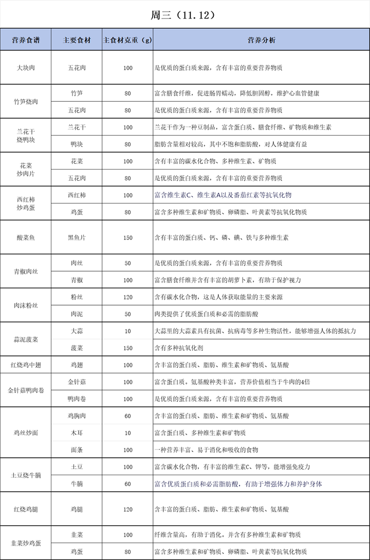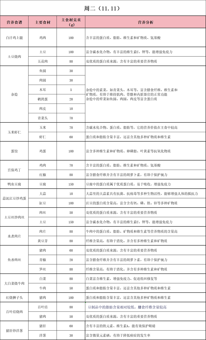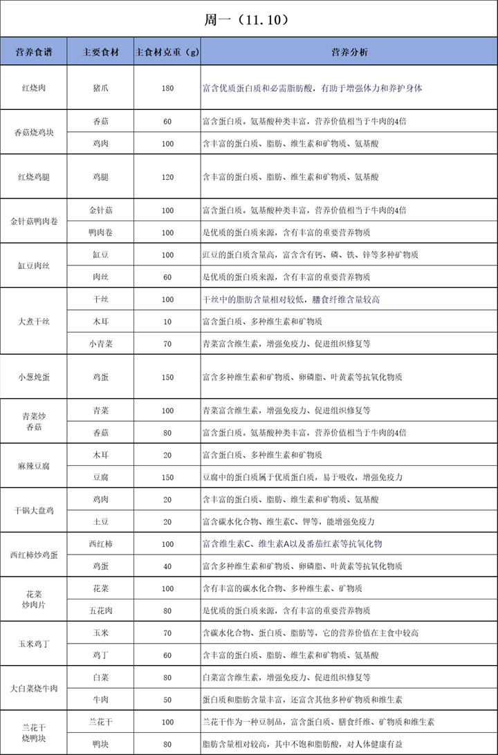 【食堂管理中心】科学搭配膳食 促进健康成长——九龙湖校区一周食谱营养分析