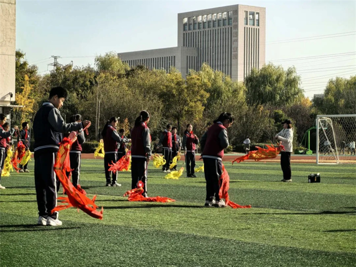 彩带如龙,少年如风!王蓉蓉老师教的“龙舞少年”组合,每一个绕臂、转体、摆带她都细致指导,让学生在行云流水的动作中,既练了协调与力量,又舞出了少年意气与传统文化之美。