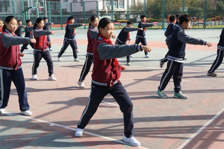 课堂上,鲍老师用专业细致的讲解,将五步拳的刚劲与韵律传递给每一位学生;训练中,鲍老师俯身示范、逐人纠错,让看似简单的拳法,学生的身体协调性与力量均得到锻炼,课程设计巧妙融入武德文化,培养了学生的坚韧精神。