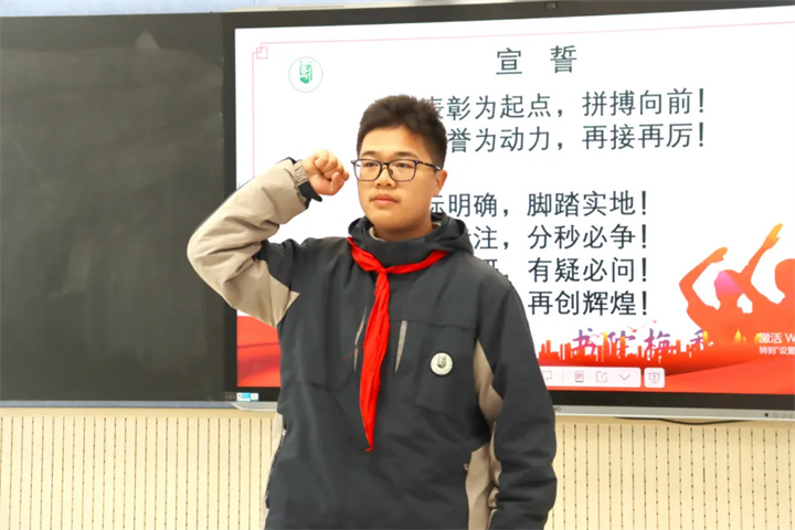 大会最后,初三(6)班的夏梓渊同学带领全体初三学子宣誓。同学们高举右拳,声音响亮,庄严宣誓。宣誓环节既是对本次大会的总结,更是对未来的承诺,将现场氛围推向高潮。