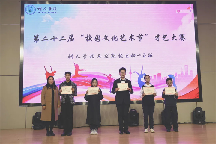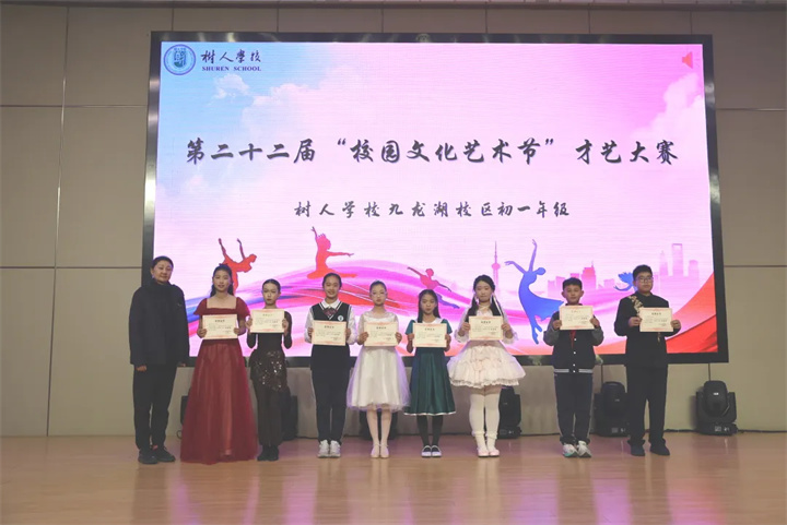 为进一步推进学校素质教育发展,丰富校园文化生活,展现初一年级学子的青春风采与艺术素养,2025年11月28日下午,树人学校九龙湖校区第二十二届校园文化艺术节初一年级才艺大赛决赛在学校报告厅隆重举行。来自初一年级的13位参赛选手同台竞技,用歌声、舞蹈、乐器演绎青春华章,为现场师生带来了一场精彩纷呈的视听盛宴。九龙湖校区学工处主任、初一年级部主任张蕊,学工处副主任、初一年级部主任李君红,初一年级部主任沈波以及音乐组全体老师出席活动。