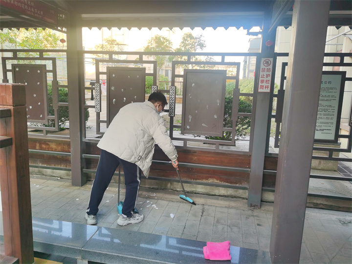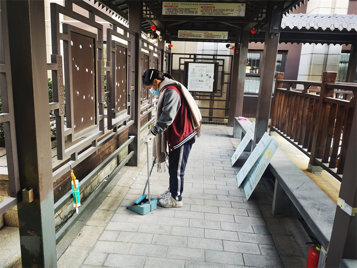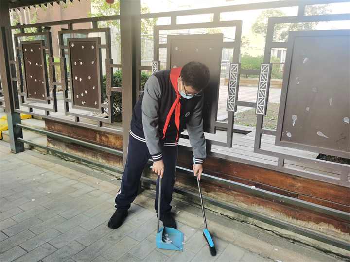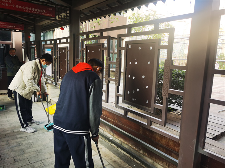 随后,同学们按照班主任的分工,井然有序地清扫起庭院内的落叶杂物。同学们干劲十足,不怕脏、不怕累,经过一番辛勤劳动,养老院的环境变得更加整洁明亮。