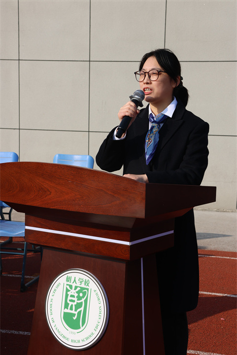 颁奖环节结束后,初三年级特等奖获得者初三(12)班周谨言同学作为学生代表发言。她表达了对学校悉心培养、老师辛勤教诲、同窗互助友爱的深深感激。她表示,这份荣誉既是肯定,更是鞭策,今后将以此为新的起点,笃志前行,不断超越。