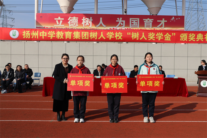 树人学校副校长樊红山宣读奖励决定。决定充分肯定了过去一学年全体师生取得的优异成绩,激励全体树人学子见贤思齐,不断进取。伴随激昂的乐曲,获奖学生分批登台,从校领导手中接过荣誉证书,并合影留念。每一位上台领奖的学子脸上都洋溢着自豪与喜悦,台下师生报以热烈掌声,共享荣耀时刻。
