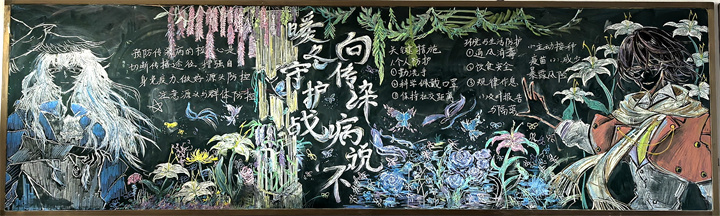 大家将专业的健康知识转化为生动的板报元素,色彩明快的插画、工整清晰的排版、通俗易懂的文字,让每一块黑板报都成为一间“移动健康课堂”。