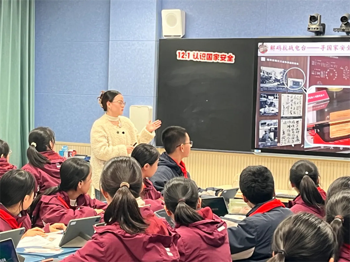 常州市罗溪中学徐凌老师以《研学王铮纪念馆,认识国家安全》为课题,借助数字化工具,引领学生开展国家安全教育之旅。课程紧扣王铮生平与贡献,设计三大研学环节。“故居红心馆———解码抗战电台,寻国家安全的丰碑”环节,学生通过“抗战电台·解说词”任务归纳国家安全基本内涵;“故居警示角———追问银河困境,明国家安全的根基”环节,学生通过“银河困境·明理单”任务理解维护国家安全的紧迫性与意义;“故居新展厅———绘制北斗星图,铸国家安全的盾牌”环节,学生开展“北斗星图·汇报卡”任务把握总体国家安全观要求。整堂课环节层层递进,任务驱动探究,将国家安全理念转化为行动学习,提升思政课育人实效。