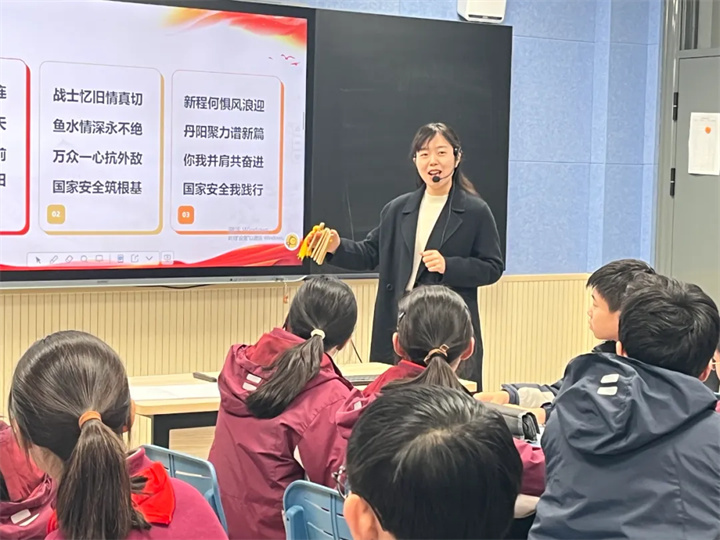 邗江实验学校陈雯老师以“竹板词”导入,带领学生走进《认识国家安全》课堂。陈老师围绕“寻抗战印迹,识民族存亡之基”“汲英雄精神,悟国泰民安之要”“启朝阳新程,践总体安全之观”三大议题探讨。她通过参观新四军纪念馆,让学生理解总体国家安全观内涵;通过聆听新四军老兵讲抗战故事,引导学生领悟国家安全意义;以家乡丹阳眼镜产业升级为例,引导学生辩论“生态安全与网络安全孰更关键”,使学生认识到总体国家安全观是涵盖多领域的体系。整堂课从历史到现实、从精神传承到行动指引,让学生理解国家安全重要性,激发其成为总体国家安全观践行者与守护者的责任感。