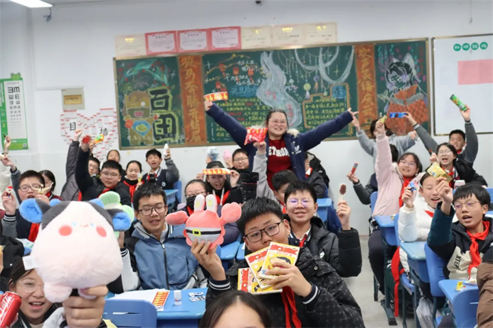 才艺表演之余,趣味横生的游戏环节更是将现场气氛推向高潮。猜谜语时的冥思苦想、成语接龙时的急中生智、抱团游戏时的手忙脚乱,让同学们在欢声笑语中拉近了距离,增进了友谊。大家踊跃参与,尽情欢笑,教室里掌声雷动,笑声久久回荡。