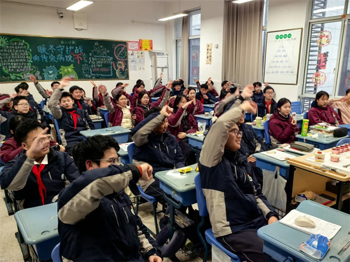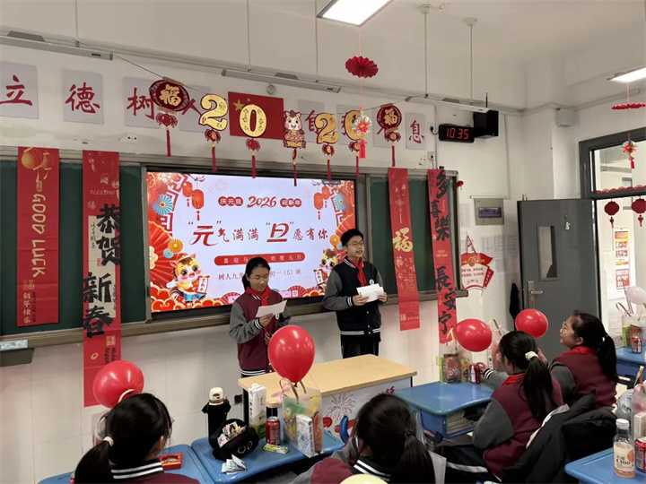 下午三时许,树人学校九龙湖校区的各个教室里,早已被欢声笑语与喜庆氛围填满,一场场别开生面的元旦联欢活动正热闹上演。同学们怀揣着对新年的憧憬,以饱满的热情和蓬勃的青春活力,共同奏响迎新的乐章。