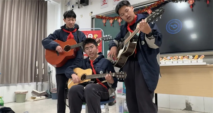 联欢活动中,同学们化身多才多艺的小达人,轮番登台各展所长。动感的音乐响起,舞蹈队的同学们踏着轻快的节拍翩然起舞,灵动的步伐、灿烂的笑容,将青春的朝气与活力展现得淋漓尽致。你画我猜节目更是笑点密集,同学们惟妙惟肖的表演、幽默风趣的台词,引得全场捧腹大笑,掌声与喝彩声此起彼伏。深情款款的诗歌朗诵,字句间饱含着对新年的祝福,也诉说着对未来的美好憧憬。此外,悦耳动听的歌曲串烧、悠扬婉转的乐器独奏轮番登场,每一个节目都凝聚着同学们的奇思妙想与满满诚意。