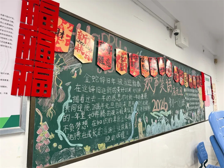 各班的布置不拘一格,有的以“马年追梦”为主题,用创意手作展现少年壮志;有的融入传统年俗元素,让非遗文化浸润课堂;还有的将亲子作品装点上墙,定格家校共育的温暖瞬间。这场别开生面的布置活动,不仅让校园充满了辞旧迎新的喜庆氛围,更在协作中拉近了家校的距离,让孩子们在动手实践中体会到团结的意义,在文化熏陶中感受传统节日的魅力。