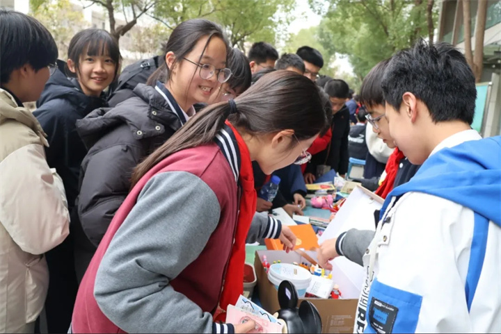同学们各司其职,售货员、推销员、收银员分工明确,有条不紊地打理着班级摊位;前来选购的师生穿梭于各个展位之间,认真挑选心仪的物品,用实际行动为公益助力。活动过程中,同学们始终牢记文明参与的要求,自觉维护校园卫生,义卖结束后及时清理摊位周边环境,展现了树人学子良好的精神风貌。