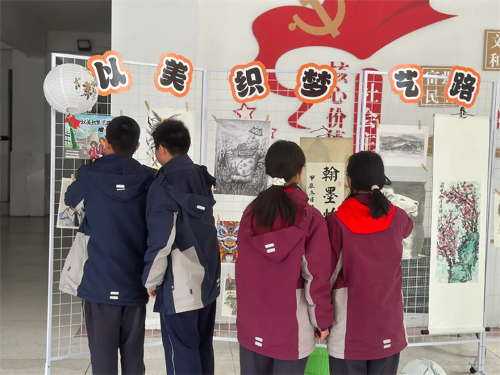 活动现场墨香四溢,观者如织。一幅幅主题鲜明、笔触生动的作品吸引师生驻足欣赏。