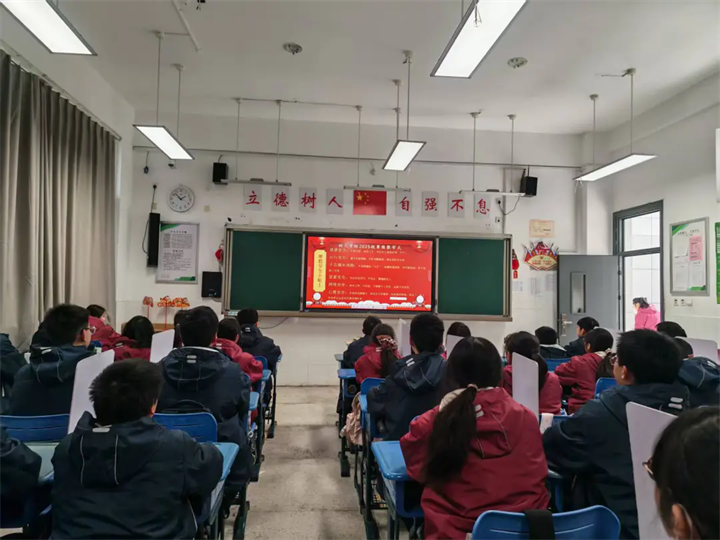 温情嘱托,年级引领护航成长不缺位。管委会张引主任代表年级组发表讲话,她全面回顾了初二年级本学期在教学成绩、校园活动、学风建设等方面取得的亮眼成绩,肯定了全体师生的辛勤付出与不懈努力。同时,张主任也对同学们提出殷切期望,叮嘱大家寒假期间要牢记安全第一,合理安排作息,坚持自主学习,以龙马之姿笃行不怠,不负韶华与师恩。