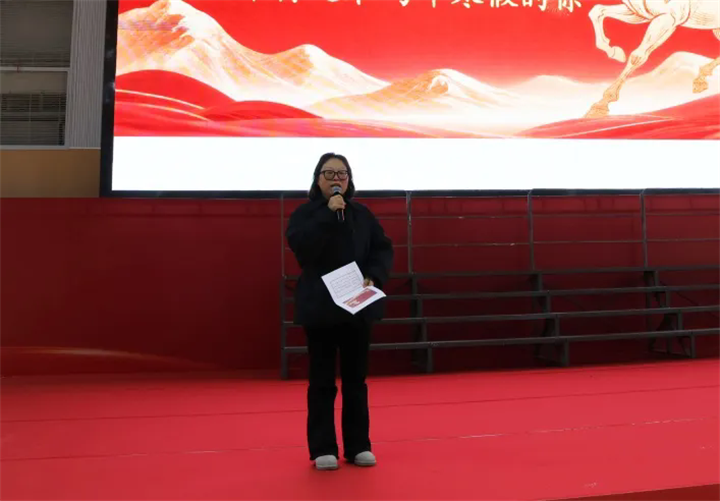 校区校长赵平的寄语如同灯塔,照亮前行之路。他强调初二是承上启下的关键学年,鼓励同学们珍惜寒假时光,在休息中养精蓄锐,在学习中沉淀积累,在实践中锤炼品格。同时,他祝愿全体师生新春快乐,愿同学们以龙马精神为翼,在2026年的新征程上策马奔腾、一往无前,书写更精彩的成长篇章。