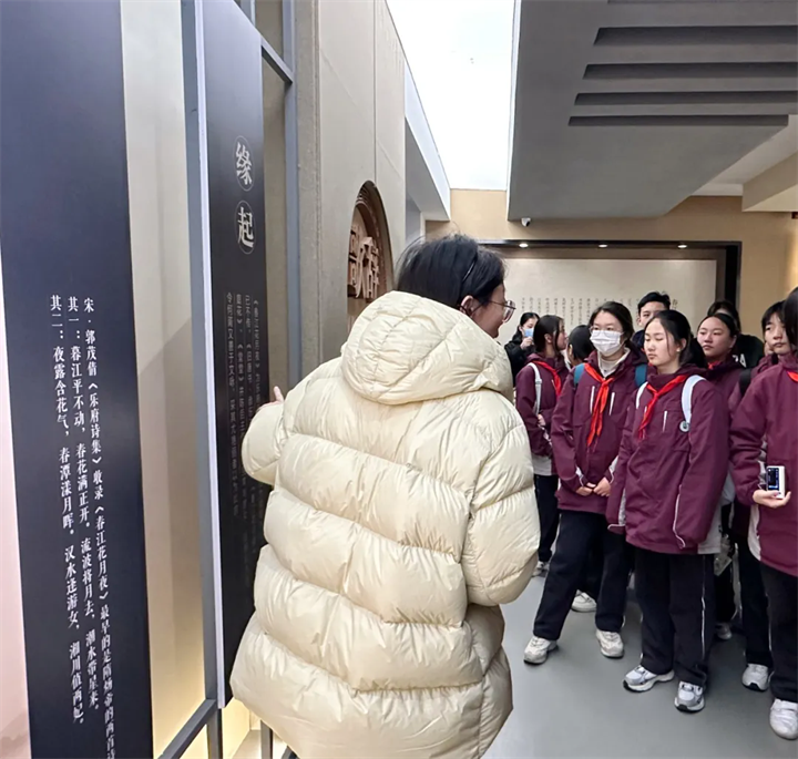 “潮落夜江斜月里,两三星火是瓜洲。”唐诗里这个承载了无数离愁与诗情的古老渡口,在2月4日的冬日暖阳中迎来了树人学校九龙湖校区初二(3)班的师生们。他们以一场沉浸式的文化之旅,让课本里的《春江花月夜》从文字中苏醒,在诗意的土地上绽放出新的生命。