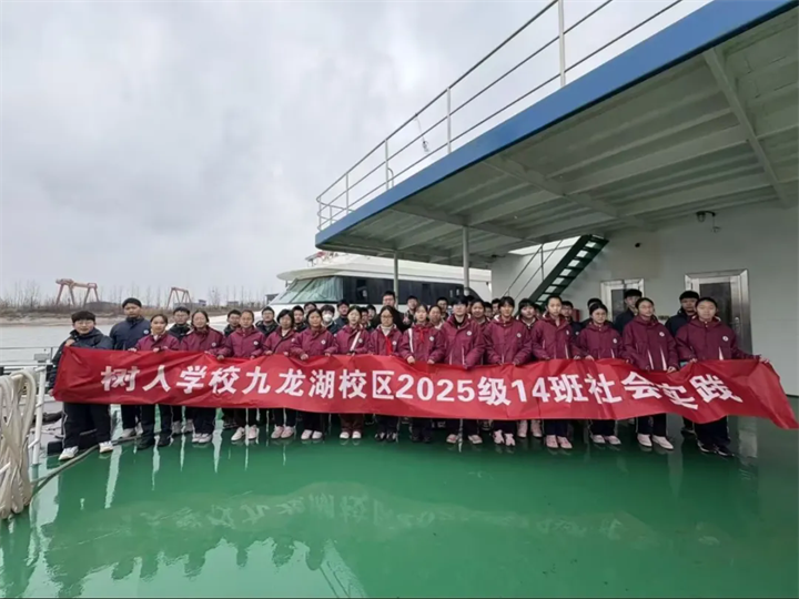 活动的最后,同学们来到了本次行程中极具意义的一站——长江岸边,登上了停泊在码头的船只。站在甲板上,眼前是烟波浩渺、奔流不息的长江,江风拂面,带来湿润而清新的气息。在这片孕育了无数生命的母亲河之上,初一(14)班的全体同学拉起横幅,以壮阔的长江为背景,拍摄了一张珍贵的集体合影。这张照片不仅定格了同学们青春洋溢的笑脸,更记录了他们对母亲河的热爱和对保护自然生态的承诺。