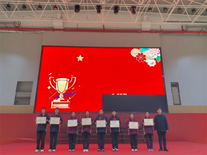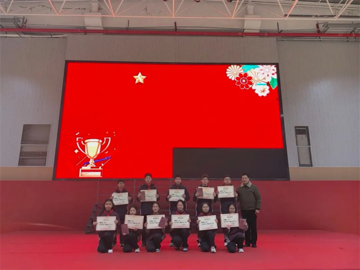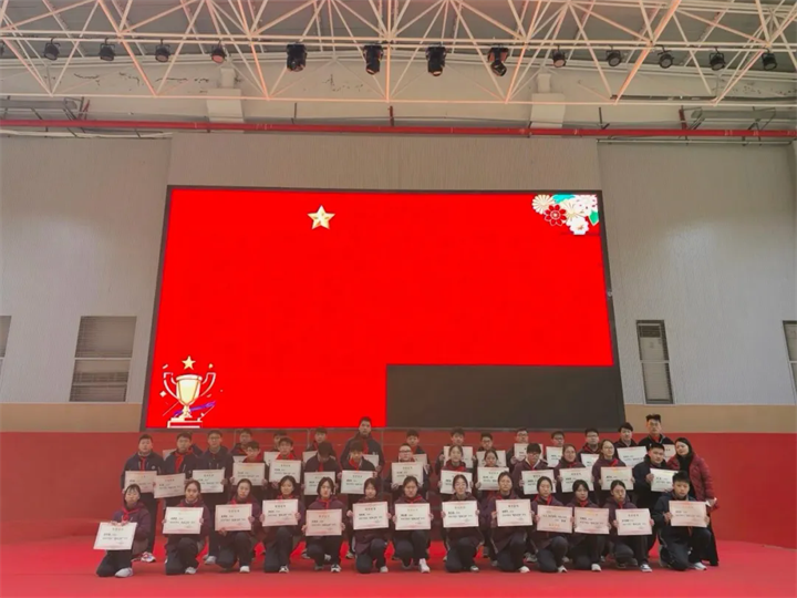 第一篇章“表彰先进”为校园榜样加冕,让奋斗的光芒照亮成长之路。现场依次揭晓“领航之星”“进步之星”获奖名单,为表现优异的学子颁发荣誉,他们或以身作则引领班风学风,或奋勇争先实现自我突破,是全体同学学习的标杆。同时,大会发布班级喜报,表彰PK优胜班级、校五好生、校优秀学生干部,一张张喜报、一次次掌声,既见证了班级集体的拼搏成果,也激发了全体同学的集体荣誉感,让“比学赶超、奋勇争先”的马年奋进精神在校园中传递。