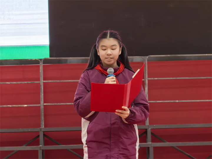 少年有志,逐梦前行。大会第四篇章“学生表态发言”中,学生代表初二(13)班邹依凡同学以“少年逐梦,策马扬鞭”为主题登台发言,分享学习心得与成长感悟,表达了全体初二学子在马年勤学善思、奋勇拼搏的坚定决心。他们的话语充满青春的力量,传递出新时代少年不惧挑战、勇攀高峰的昂扬斗志,也让现场同学深受鼓舞,更加坚定了以奋斗书写青春的信念。