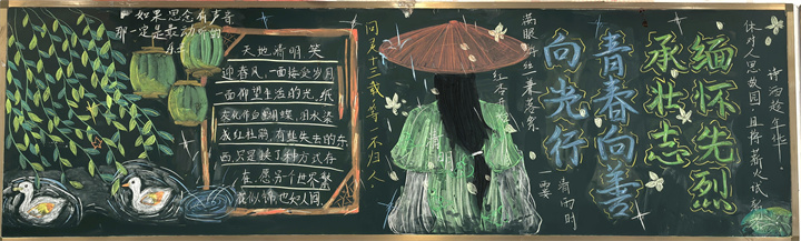 各班级充分发挥想象力与创造力,同学们分工协作、各司其职,创作了一幅幅精美的黑板报作品。本次黑板报作品主题鲜明、内容充实,版面布局合理、创意独具匠心,充分展现了我校学子对革命先烈的崇敬之情,以及积极向上、向善向光的精神风貌。