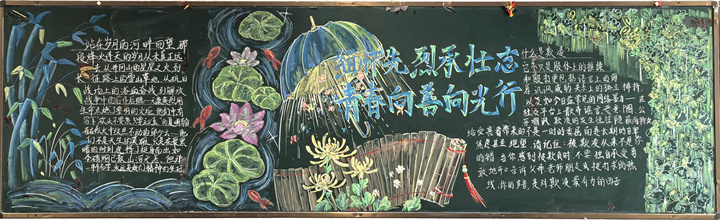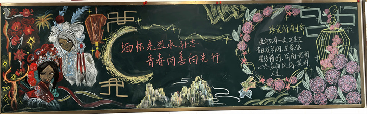 为传承红色基因,厚植爱国情怀,引导全体学子铭记先烈事迹、践行青春担当,九龙湖校区开展以“缅怀先烈承壮志,青春向善向光行”为主题的黑板报评比活动。各班级积极响应、精心筹备,用色彩与文字,绘就青春敬意,传递奋进力量。