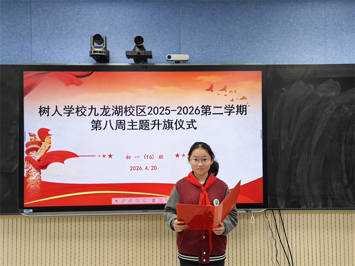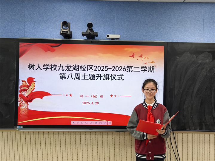 春风送暖,墨香盈园。为迎接世界读书日,营造浓厚的校园书香氛围,引导学子养成良好阅读习惯,九龙湖校区隆重举行“书香四月天 阅读伴成长”主题升旗仪式。本次仪式由初一16班王语诺主持,徐曼乔同学带来以阅读为主题的国旗下讲话。讲话中,队员结合自身阅读感悟,分享读书带来的成长与收获,号召全体同学珍惜四月美好时光,与经典为友、与书籍为伴,养成每日阅读的好习惯,在阅读中汲取知识、涵养品格、开拓视野,用书香浸润青春,用文字点亮梦想。