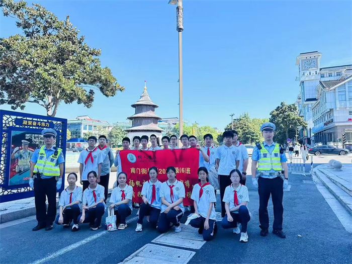 炎炎夏日,正值暑期长假,高温天气伴随着车流量的增加让交通安全逐渐被人们所重视,为此我校南门街校区初二(6)班22位同学来到交警一大队文昌岗开展暑期志愿服务活动。本次实践活动包括如下几个内容:
