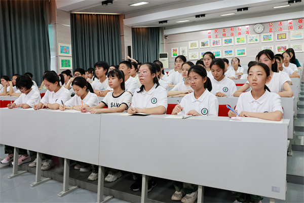 8月22日上午,学工处张瑾主任在南门街多功能厅对全体初一学生做了题为《新生常规习惯养成》的讲座。