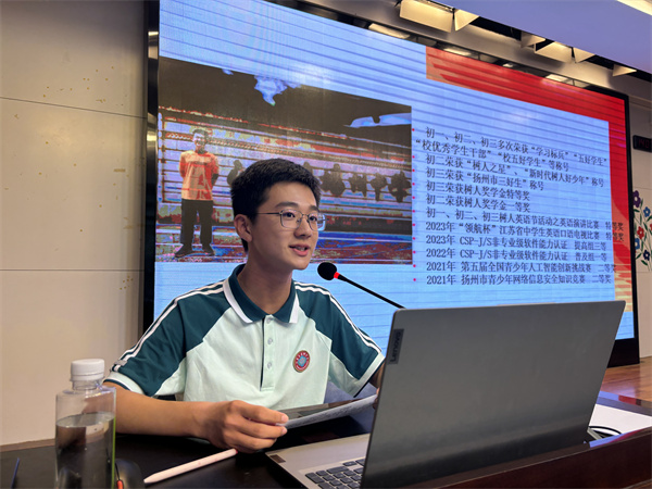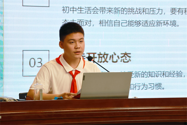 钱暻佑学长则从“跟紧学习和生活的节奏”、“初一、初二、初三具体如何规划”和“调整心态和作息”三个方面指导大家走好初中每一步。最后两位学长也充分鼓励了新同学们,祝愿大家以饱满的精神面貌认真对待即将到来的初中生涯。