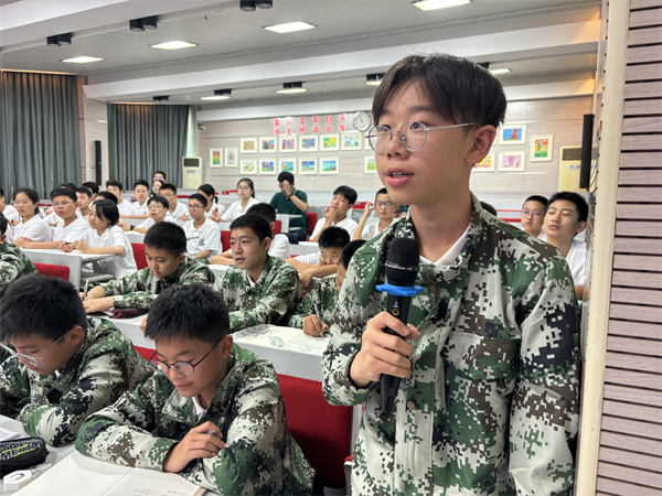 两位学长先祝贺了2024级新生学子们能进入树人学校这个知识的殿堂学习成长、共同进步。苏研学长从“心态调整很重要”、“制定合理目标”、“高效学习方法”、“做好时间管理”、“积极参加活动”、“建立良好的人际关系”、“培养自律习惯”、“练好书写”和“保持健康体魄”这九个方面对如何规划初中学习和生活作出了诚恳的建议和提醒,并与在场的同学们就他们关心的问题进行了热烈的互动。