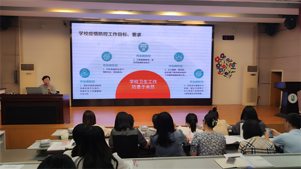 南门街校区校医单德华对医务室日常工作进行说明。单医生强调,要进一步加强突发疾病的应急处理能力,继续开展健康教育活动,继续完善安全管理制度和应急预案。