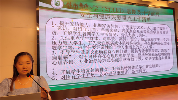 南门街学工处副主任徐军进行题为“启智润心,赋能成长”的生命健康关爱工作专题培训。徐主任就《全市中小学(幼儿园)暑期及开学前后安全与健康关爱重点工作清单》展开说明,强调班主任在日常工作中务必注重每日考勤、异常行为记录、心理普测与特异体质排查等工作的跟进。