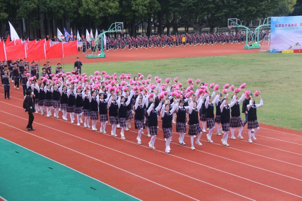 上午十一时许,铿锵有力的《运动员进行曲》响起,开幕式正式开始。伴着学生讲解员充满激情的解说,由国旗队、校旗队、会徽、标语、鲜花队、红旗队和南门街初中部全体学生组成的方阵,依次列队入场。同学们意气风发,激情飞扬,脚步坚定,口号响亮,展示出树人学子昂扬奋进的风采。操场上掌声雷动,欢呼雀跃。