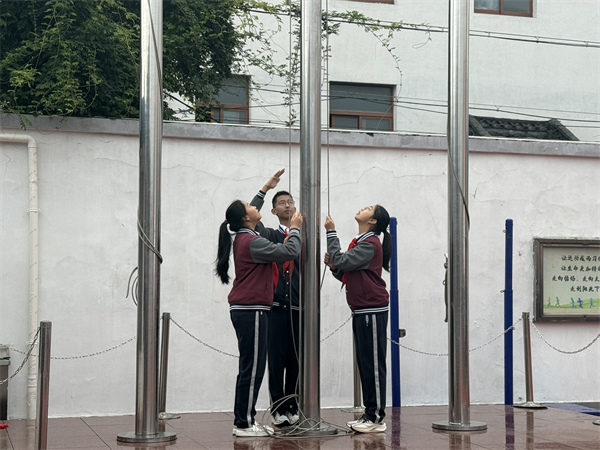 “回首来时路,风雨踏征途。”在这个承载着厚重历史的季节,大地仿佛也在诉说着往昔的峥嵘岁月。早晨七点半,随着《义勇军进行曲》的雄壮旋律,升旗仪式正式开始。担任今日升旗手的是李霏白同学,护旗手是陈沁橦和宗奚蕊同学。全体同学以崇敬的心情,整齐划一的队形和饱满的精神状态,向缓缓升起的五星红旗致以崇高的队礼。