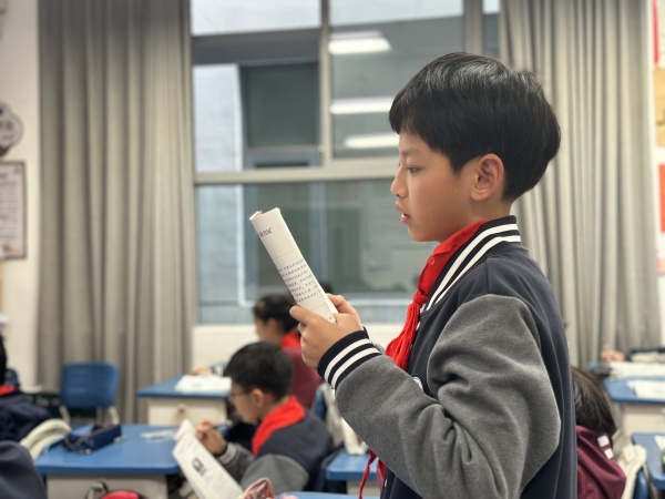 课堂上,余老师带领学生探索“百草园”中的景物描写、听“美女蛇”的故事、感受雪地捕鸟的乐趣,体会鲁迅在“百草园”无尽的快乐。余老师通过引导学生小组讨论,探讨鲁迅笔下那些生动有趣的动植物描写,品味准确传神的语言描写,让学生仿佛置身于那个充满生机与活力的百草园中。“雪地捕鸟”部分,余老师通过对捕鸟时的一系列动词的提炼与讲解,让学生体验鲁迅童年时的乐趣与智慧。学生在热烈的讨论中感受到鲁迅对自然的热爱和对生活的细致观察。