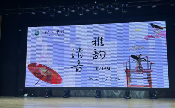 2024年10月29日下午4点,树人学校南门街校区第114场“雅韵清音”在学校艺术报告厅举行。这次的活动由初二5班精心准备。在主持人郭宇轩、刘翎睿、陈梓茜、朱丰贤的宣布声中,活动正式开始。