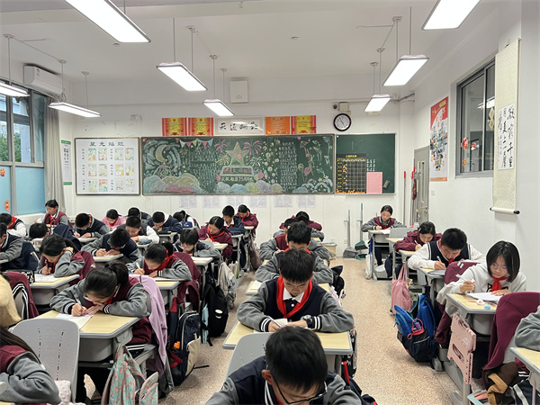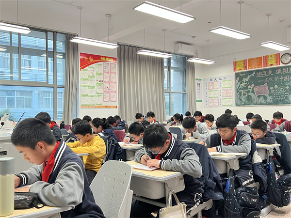 比赛正式开始后,每个同学都严肃认真地对待此次比赛,宁静的考场内,只听见笔落纸上的沙沙声,他们细心审题,认真计算,反复检查,工整书写,整个过程井然有序,展现了树人学子求真务实的学习品质和奋发进取的精神风貌。