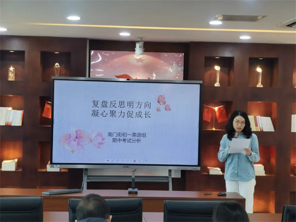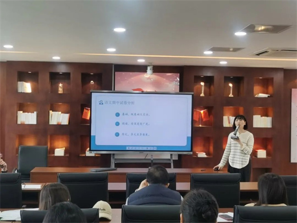 第二项议程,年级组对本次期中考试进行了全面精准的分析。通过清晰详实的数据,张主任从横向到纵向,从年级到班级,从学科到融合,从教师到学生,多角度、多维度地分析了年级的优势和不足。数据背后,既彰显了学生们学习成效,也映射出教学过程中的亮点与智慧,为教师们的后续教学提供了有力的支撑与参考。