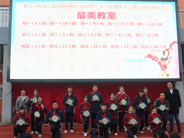 升旗仪式后,在李冬冬老师的带领下,各年级以饱满的热情唱响国歌,表达了对祖国的热爱之情。紧接着,主持人公布了获得“最美教室”的班级,班长上台领奖。通过美化教室环境,激发学生的创造力和集体荣誉感,营造良好的学习氛围。然后,树人学校副校长卢生茂对全校学生提出了一周常规的具体要求和美好期望,强调了纪律与安全的重要性,鼓励大家共同努力,严守校规。此次升旗仪式不仅是一次爱国主义教育的契机,也为新一周的学习生活奠定了积极向上的基调。