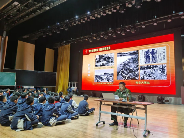 2024年11月20日,树人学校南门街校区自清讲堂在艺术报告厅迎来第5讲“国防教育进校园,点亮青春强国梦”,此次讲座特别邀请扬州军分区战备建设处上校处长葛守玉先生来校,为同学们带来了一场别开生面的国防知识讲座,初一年级的全体学生积极参与,活动现场气氛热烈。