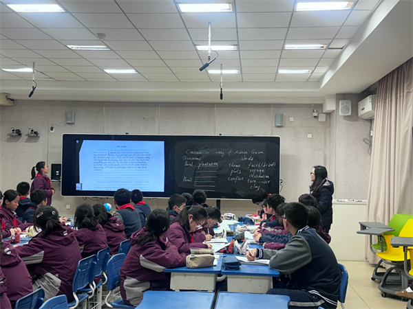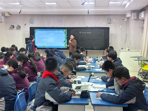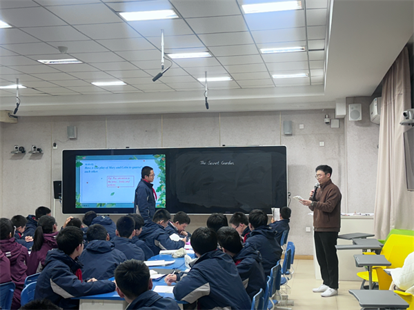 第一节课是树人学校南门街校区张辰恩老师带来的《秘密花园》多轮续写课。课堂上,张辰恩老师首先从小说人物关系上引导学生们思考朋友之间是否会产生分歧,引出续写的主要章节。在第一轮续写环节,学生们在老师的引导下积极展开思维的翅膀,大胆创作,提出各种新颖的情节走向和创意想法,丰富了主人公对话的细节。随后,老师组织学生们进行小组交流与互评,分享各自的续写思路,相互启发,碰撞出更多的灵感火花。进入第二轮和第三轮续写时,学生们结合之前的交流反馈,在情节的丰富性、语言的准确性和表达的流畅性上都有了显著提升。课堂最后,张辰恩老师引导学生点出了本部小说的主题——友谊与积极的生活态度。