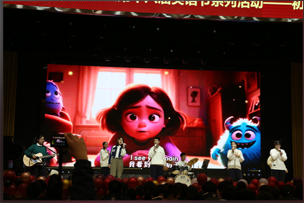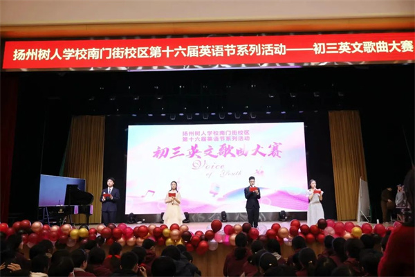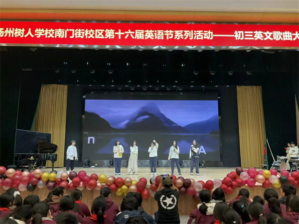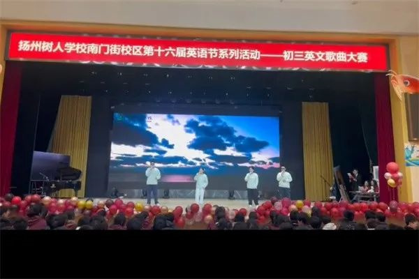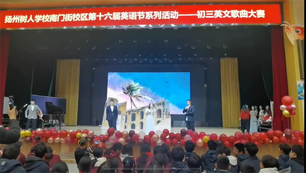 Where there is music , there is pleasure.英语是唯美的语言,音乐是浪漫的艺术。为了调动学生对英语学科的积极性、兴趣,提升学生的口语水平,锻炼他们的表达能力,给学生提供一个展示自己的舞台。2024年11月30日下午,树人学校南门街校区初三年级举行“‘英’你精彩,‘语’你同唱”英文歌曲大赛,初三年级全体师生齐聚一堂,共赴一场活力四射的青春盛典。