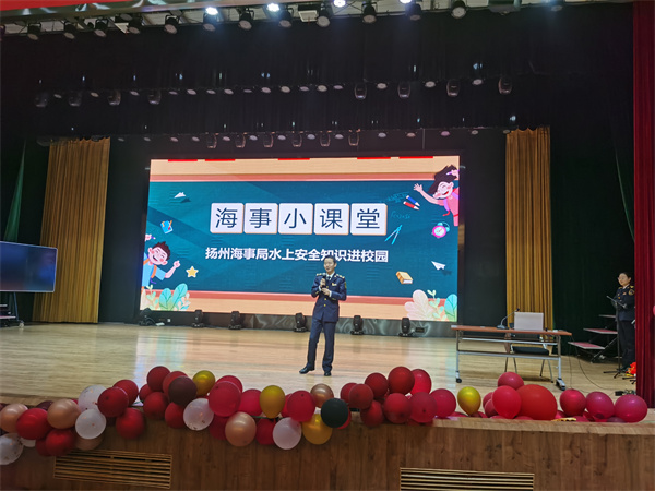 扬州海事局副局长闻婧女士通过生动形象的讲解,向学生们介绍了海事部门的主要职能,包括海上交通管理、船舶安全检查、防污染监督以及应急搜救等关键职责。闻局长强调了海事工作对于保障水上交通安全的重要性,并通过实例讲述了海上搜救的紧迫性和复杂性。