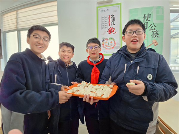 在包饺子的实践过程中,学生们不仅掌握了制作饺子的技巧,还通过与老师、厨师的交流分享,了解了不同地域的饺子文化和特色做法。这种跨文化的交流,不仅拓宽了大家的视野,也增强了校园文化的多样性和包容性。经过一段时间的共同努力,一盘盘形态各异、香气扑鼻的饺子被端上了餐桌。学生们在品尝自己劳动成果的同时,也感受到了团队合作带来的成就感和喜悦。此次全班一起包饺子不仅让学生体验到了动手制作的成就感,还让彼此之间加深了解,增进友谊。